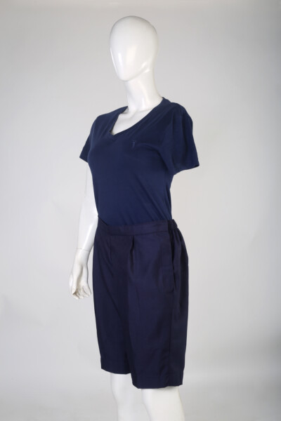 - Solid Navy Unisex Shorts with a single pleat. Hybrid waistband – fixed in front and elastic in back which ensures both style and comfort and versatile for various body shapes. Velcro Fasteners for easy dressing and undressing. Can be slid in with minimum efforts. Daily, all day wear.