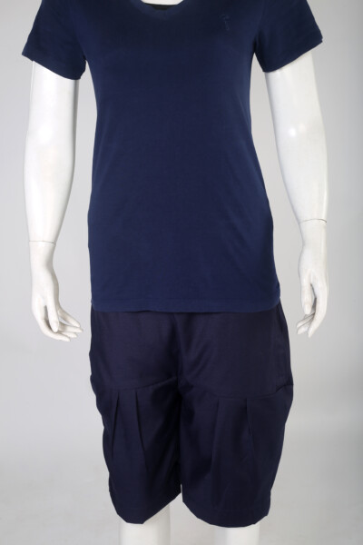 - Solid Navy unisex palliative two sides openable shorts with double patched pleats. Both sides can be opened for easy dressing and undressing and highly recommended with adult diapers. Hybrid waistband – fixed in front and elastic in back which ensures both style and comfort and versatile for various body shapes. Daily, all day wear.